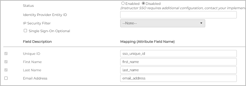 This is an add-on feature. Additional pricing applies to this feature. Once SSO is enabled in your account, there may be other configuration considerations for setting up SSO to send additional registrant data to Learning Stream, but at a minimum, the following will be necessary: